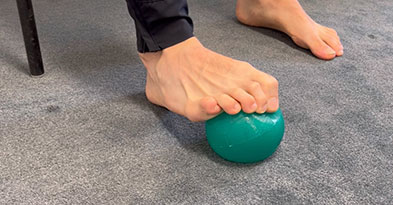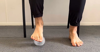 Smerter i foden kan bl.a. komme fordi du mangler støtte under foden. Sko som er helt flade (klipklappere, ballerinasko eller lign.), giver ikke nok støtte til din fod og du spænder op i muskulaturen under foden. Musklerne bliver spændte/betændte og skal udtrækkes og masseres. Det kan du gøre ved dagligt at lave fodøvelser. Vi har lavet 5 nemme fodøvelser du kan lave når du sidder ned.